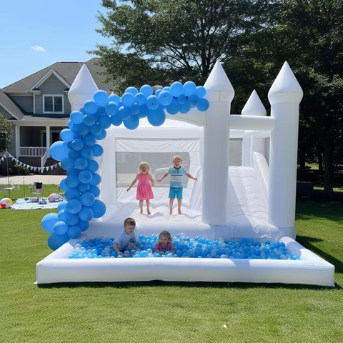 บ้านปราสาทเป่าลมขนาดเล็กสำหรับเด็กทำจาก9x7x6ft กระโดดเด้งได้สีขาว